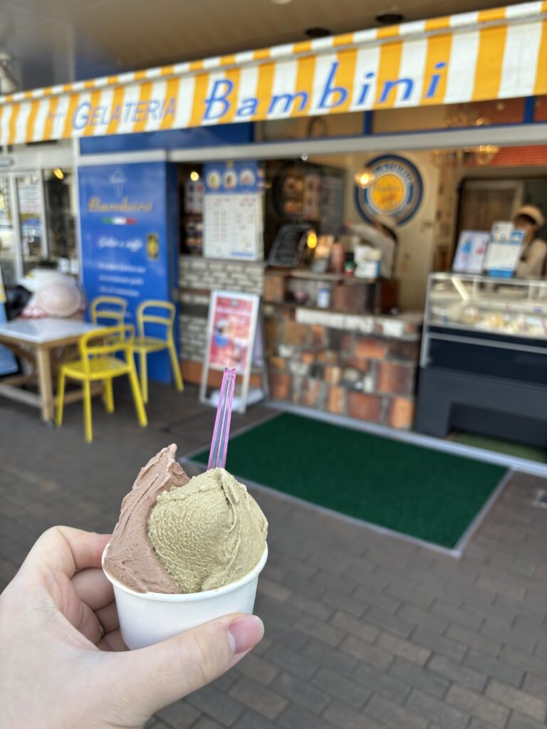 すし遊館から1Fに降りたところにジェラートのお店があり、そのまま即購入してしまいました。
