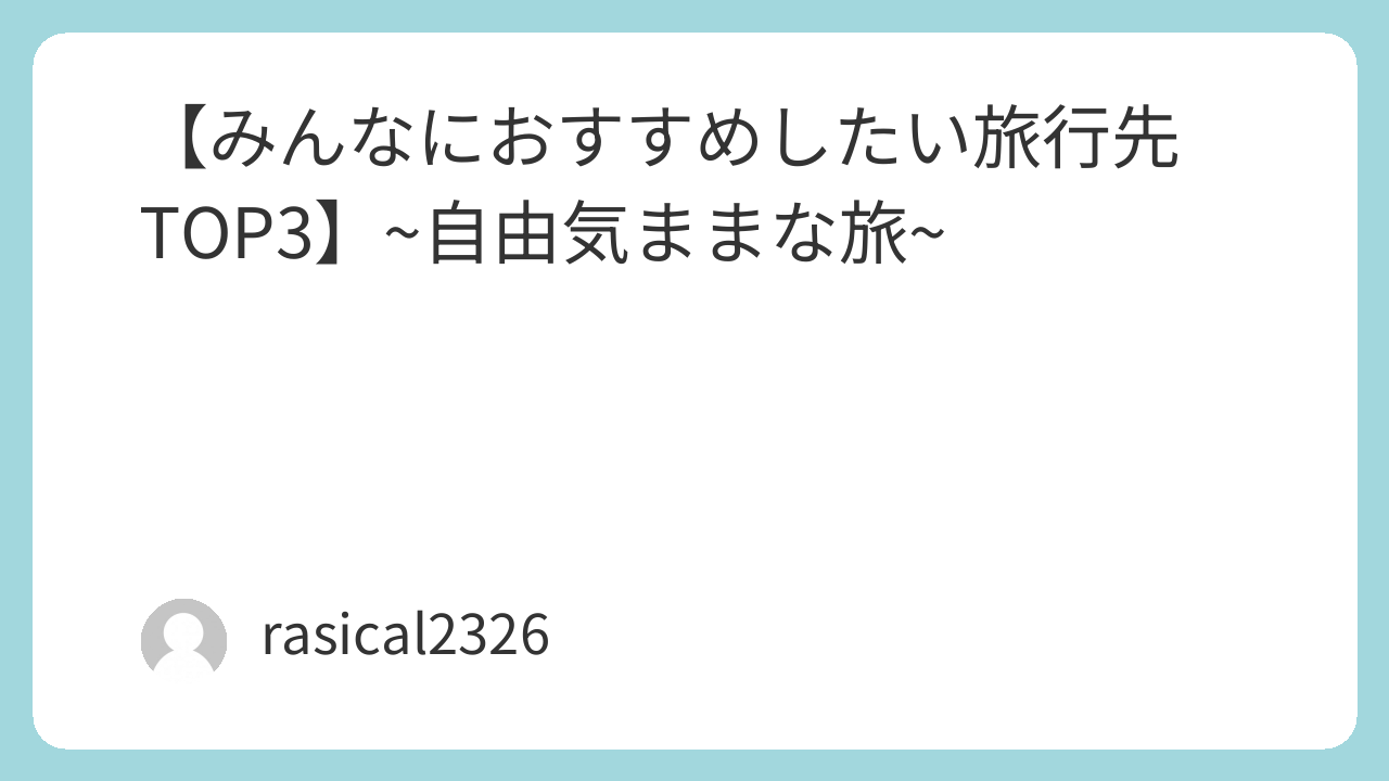 【みんなにおすすめしたい旅行先TOP3】~自由気ままな旅~